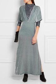 NET-A-Porter GANNI Shown here with: Cédric Charlier Top, Loewe Clutch, Acne Studios Boots, Bottega Veneta Rings, Kenneth Jay Lane Earrings.https://www.net-a-porter.com/se/en/product/751273/GANNI/velvet-maxi-dress